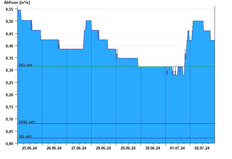 - Mittlerer Niedrigwasserabfluss MNQ 0,08 m³/s