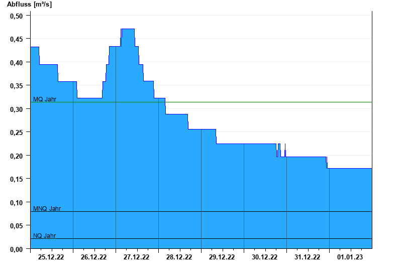 - Mittlerer Niedrigwasserabfluss MNQ 0,08 m³/s