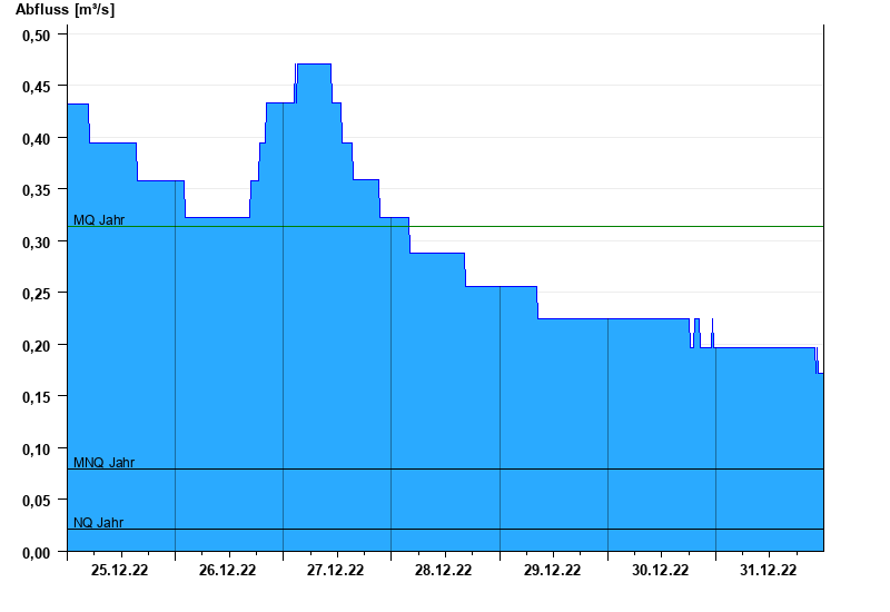 - Mittlerer Niedrigwasserabfluss MNQ 0,08 m³/s