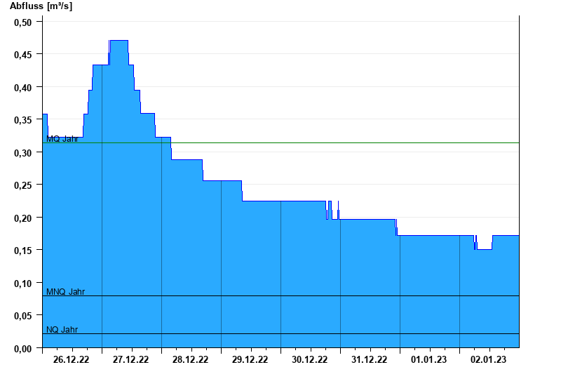 - Mittlerer Niedrigwasserabfluss MNQ 0,08 m³/s