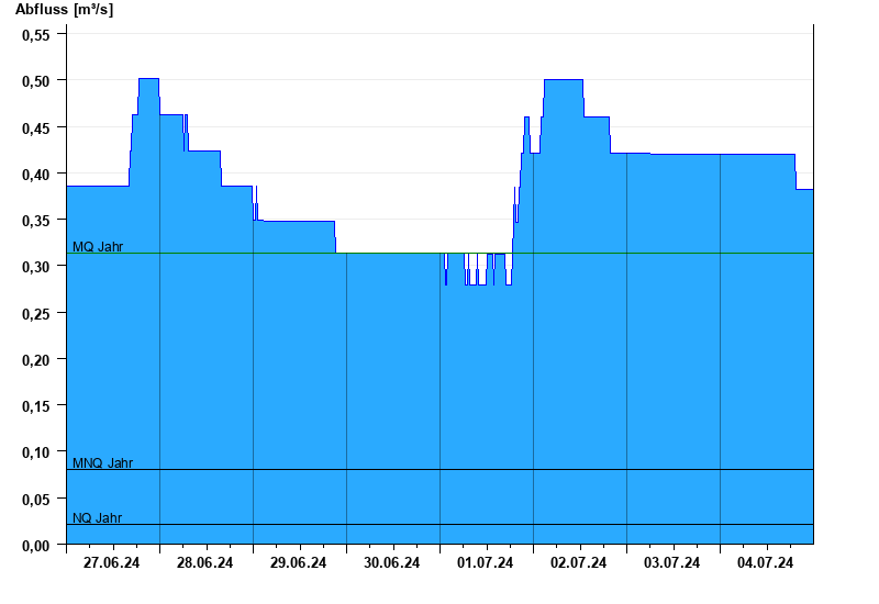 - Mittlerer Niedrigwasserabfluss MNQ 0,08 m³/s