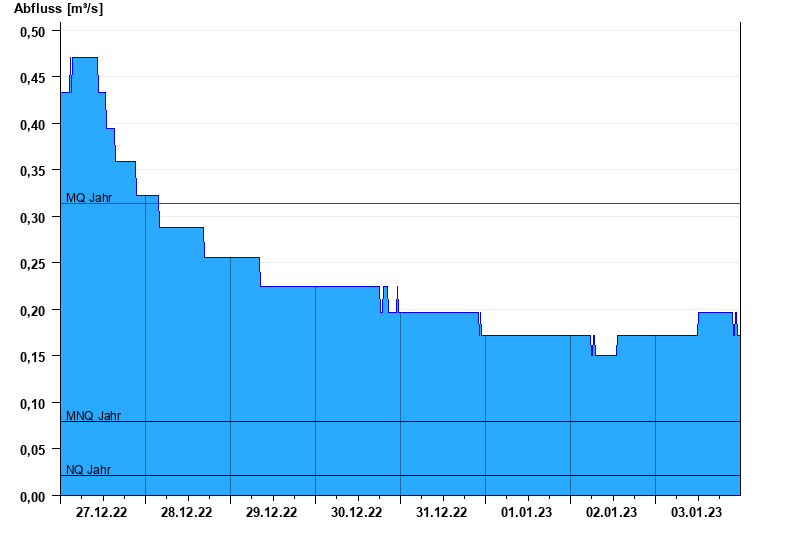 - Mittlerer Niedrigwasserabfluss MNQ 0,08 m³/s