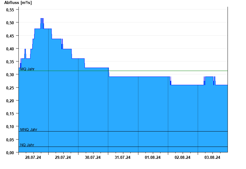 - Mittlerer Niedrigwasserabfluss MNQ 0,08 m³/s