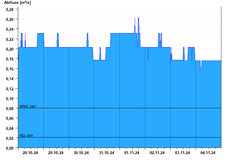 - Mittlerer Niedrigwasserabfluss MNQ 0,08 m³/s