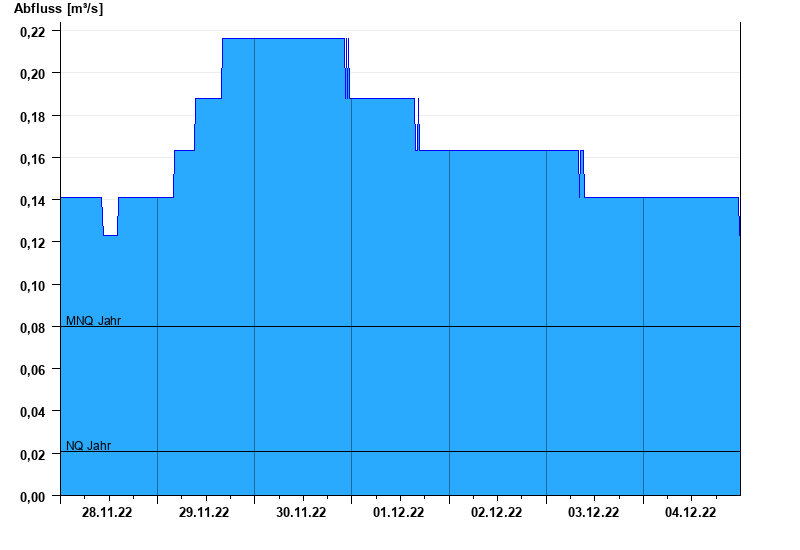 - Mittlerer Niedrigwasserabfluss MNQ 0,08 m³/s