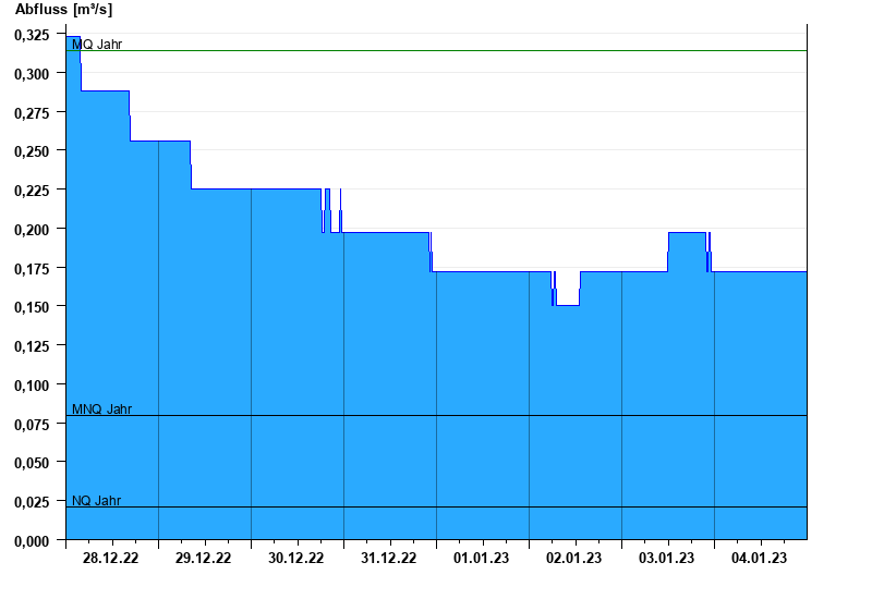 - Mittlerer Niedrigwasserabfluss MNQ 0,08 m³/s