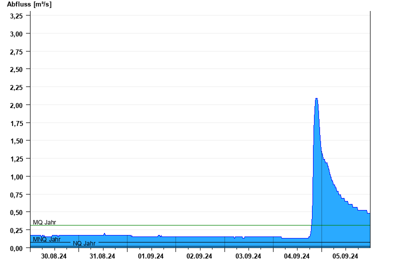 - Mittlerer Niedrigwasserabfluss MNQ 0,08 m³/s