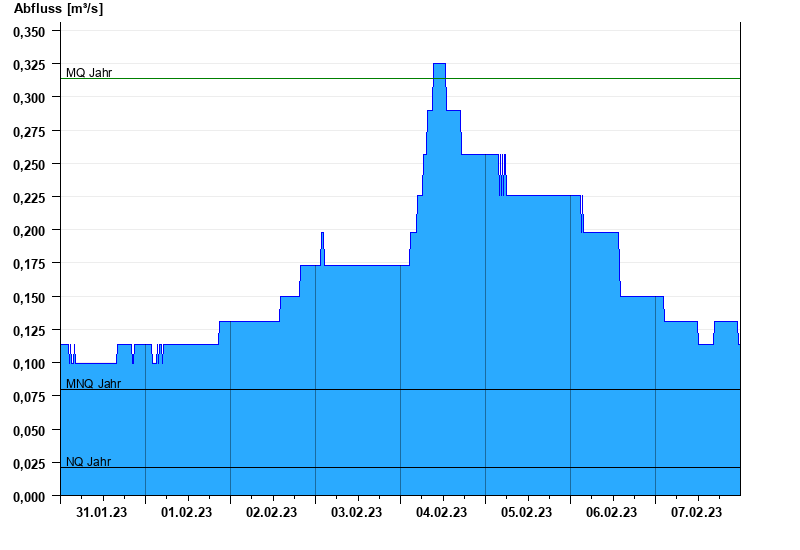 - Mittlerer Niedrigwasserabfluss MNQ 0,08 m³/s
