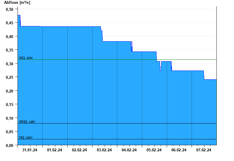 - Mittlerer Niedrigwasserabfluss MNQ 0,08 m³/s