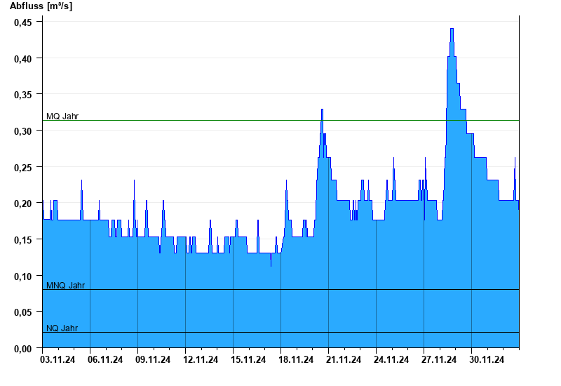 - Mittlerer Niedrigwasserabfluss MNQ 0,08 m³/s