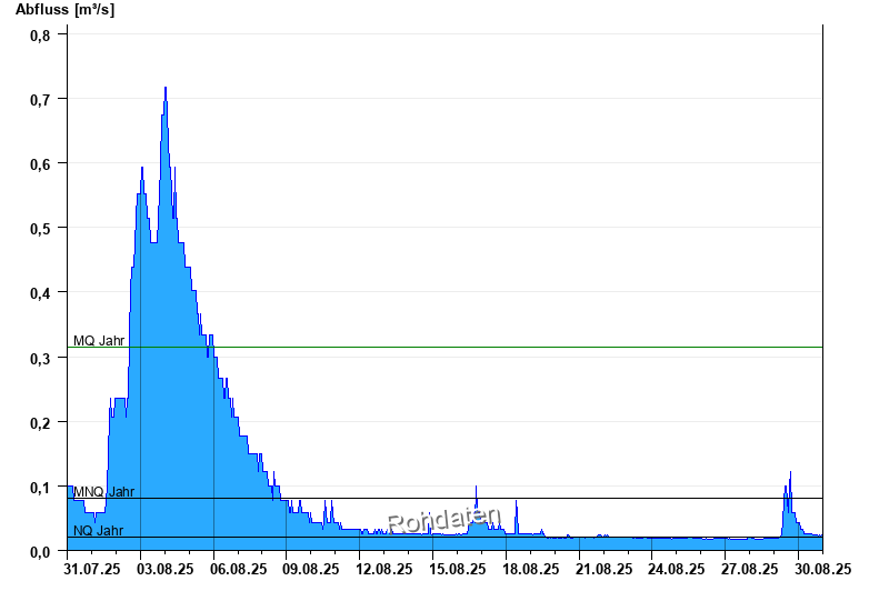 - Mittlerer Niedrigwasserabfluss MNQ 0,08 m³/s