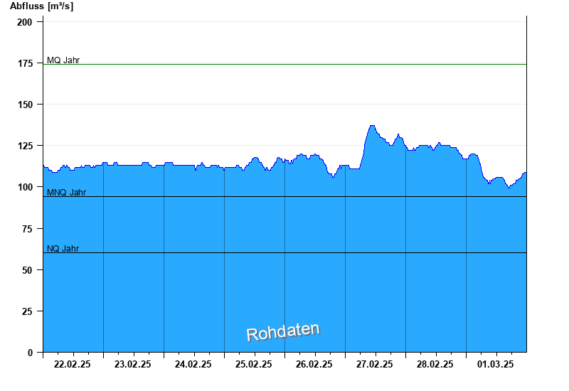 - Mittlerer Niedrigwasserabfluss MNQ 94,3 m³/s