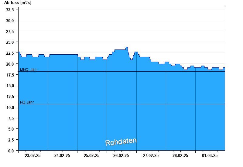 - Mittlerer Niedrigwasserabfluss MNQ 18,2 m³/s