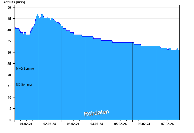 - Mittlerer Niedrigwasserabfluss MNQ 22,1 m³/s