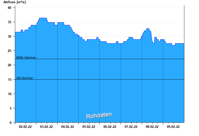 - Mittlerer Niedrigwasserabfluss MNQ 22,1 m³/s