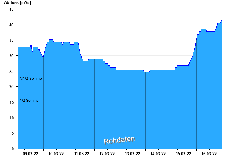 - Mittlerer Niedrigwasserabfluss MNQ 22,1 m³/s