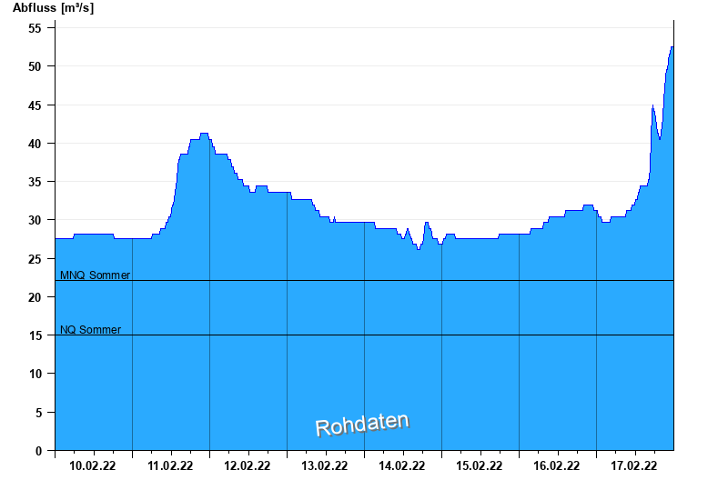 - Mittlerer Niedrigwasserabfluss MNQ 22,1 m³/s