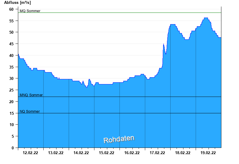 - Mittlerer Niedrigwasserabfluss MNQ 22,1 m³/s