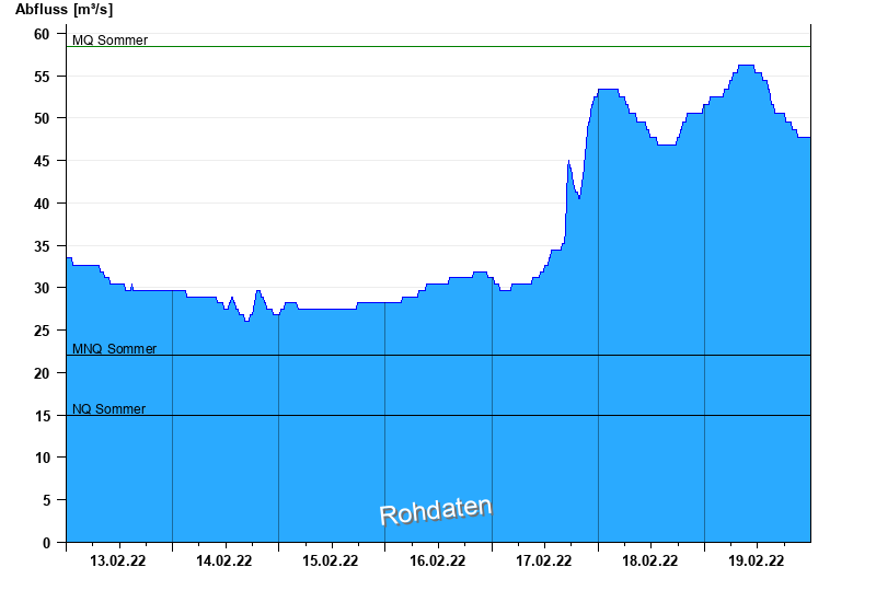 - Mittlerer Niedrigwasserabfluss MNQ 22,1 m³/s