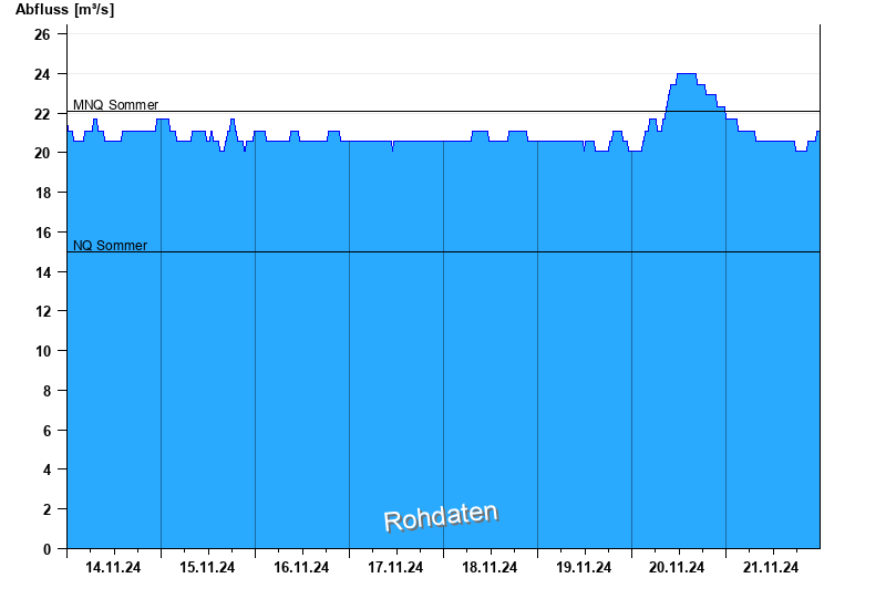 - Mittlerer Niedrigwasserabfluss MNQ 22,1 m³/s