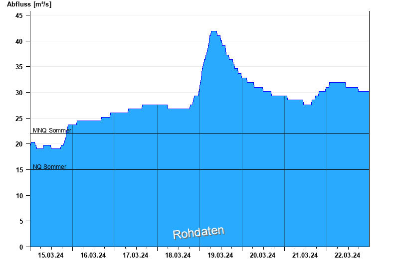 - Mittlerer Niedrigwasserabfluss MNQ 22,1 m³/s