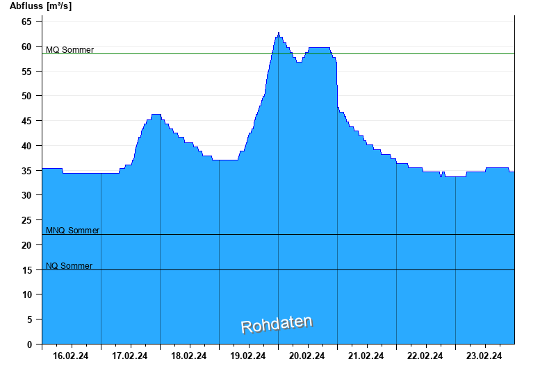 - Mittlerer Niedrigwasserabfluss MNQ 22,1 m³/s