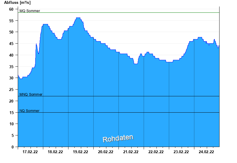 - Mittlerer Niedrigwasserabfluss MNQ 22,1 m³/s