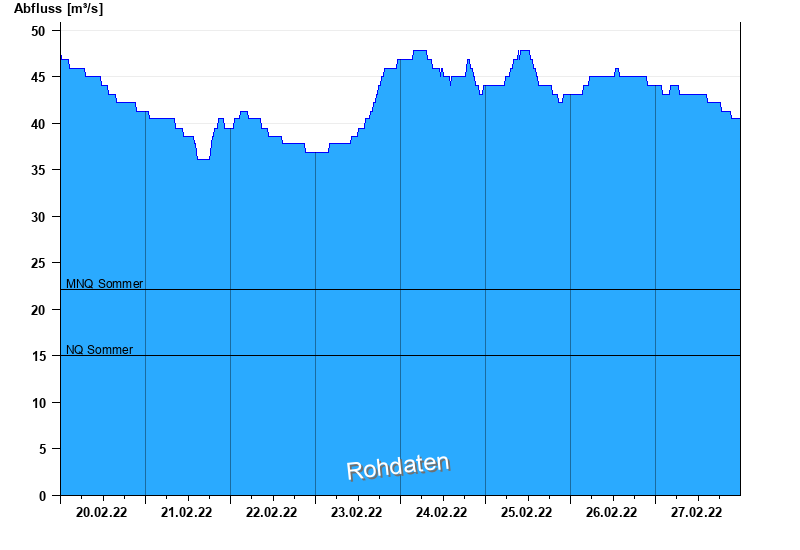- Mittlerer Niedrigwasserabfluss MNQ 22,1 m³/s