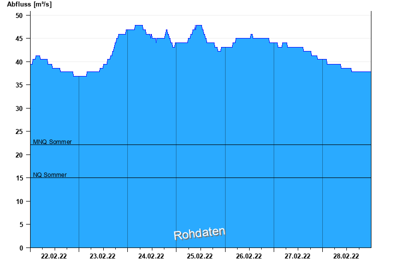 - Mittlerer Niedrigwasserabfluss MNQ 22,1 m³/s