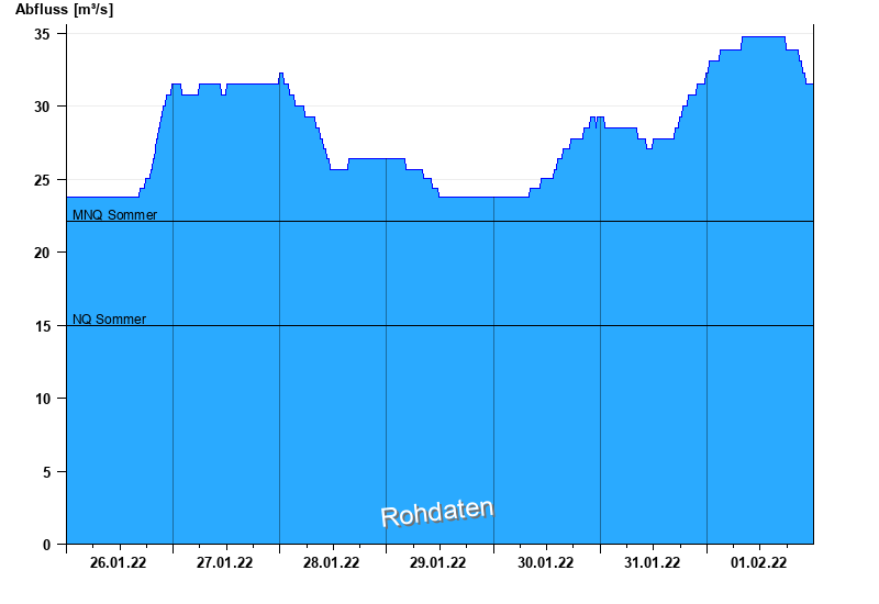 - Mittlerer Niedrigwasserabfluss MNQ 22,1 m³/s
