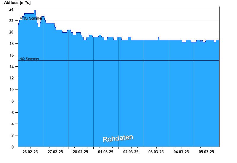 - Mittlerer Niedrigwasserabfluss MNQ 22,1 m³/s