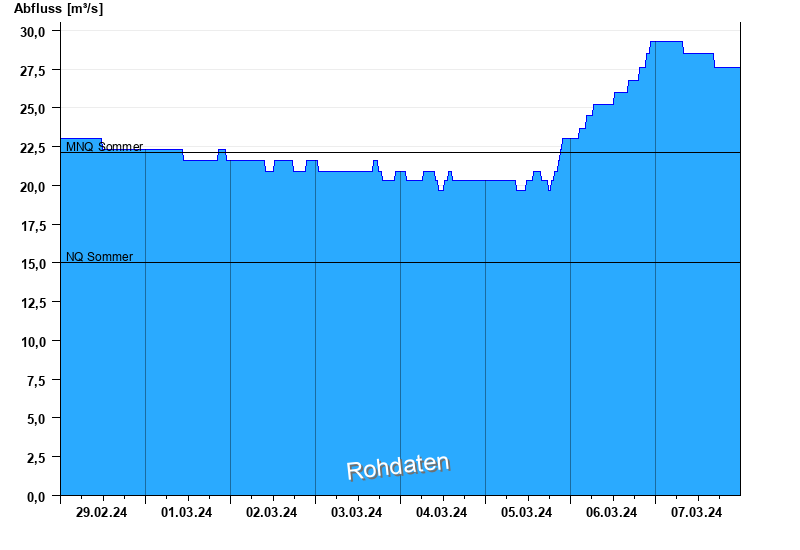 - Mittlerer Niedrigwasserabfluss MNQ 22,1 m³/s