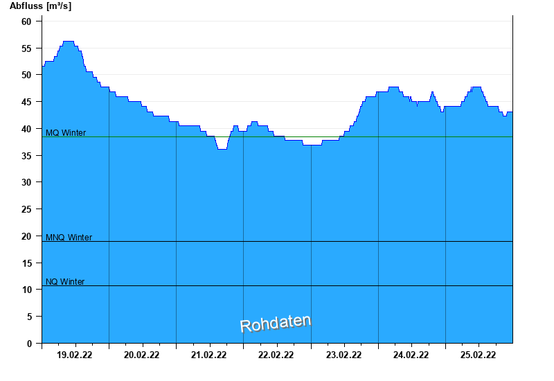 - Mittlerer Niedrigwasserabfluss MNQ 19 m³/s