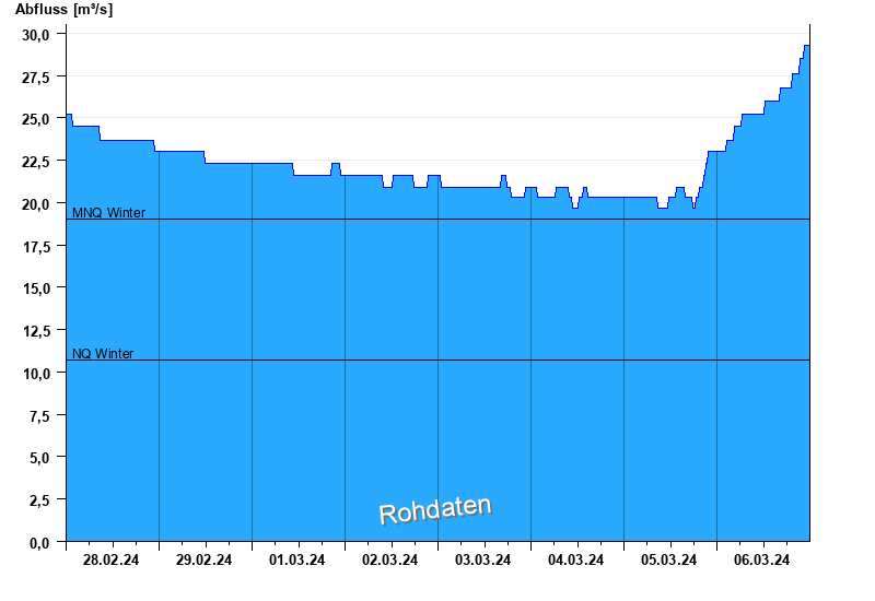- Mittlerer Niedrigwasserabfluss MNQ 19 m³/s