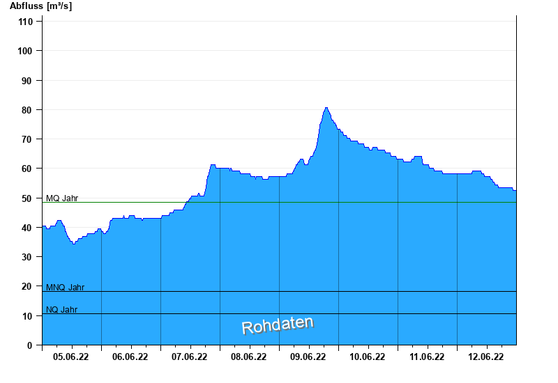 - Mittlerer Niedrigwasserabfluss MNQ 18,2 m³/s