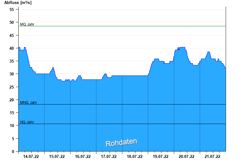 - Mittlerer Niedrigwasserabfluss MNQ 18,2 m³/s