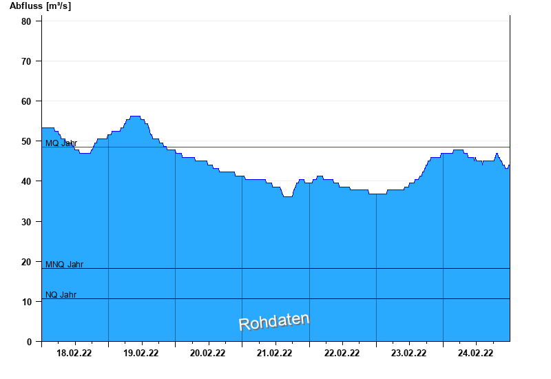 - Mittlerer Niedrigwasserabfluss MNQ 18,2 m³/s