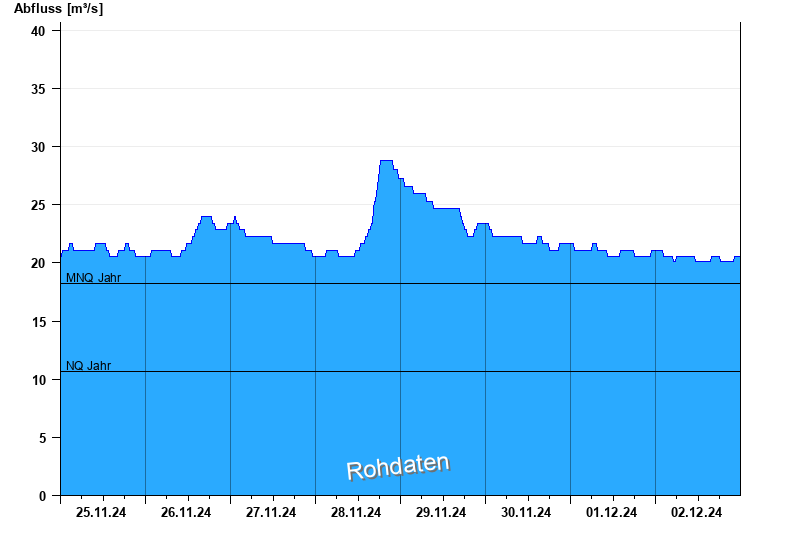 - Mittlerer Niedrigwasserabfluss MNQ 18,2 m³/s
