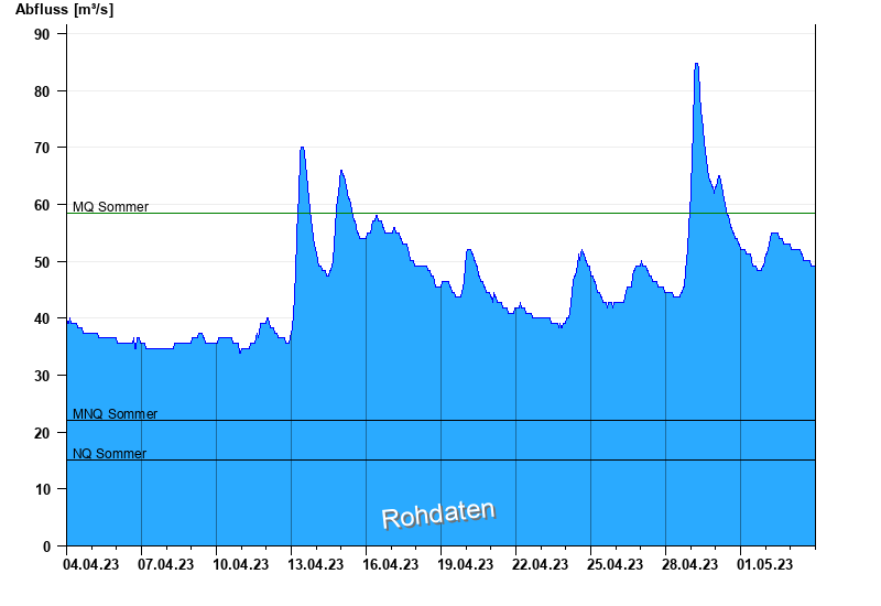 - Mittlerer Niedrigwasserabfluss MNQ 22,1 m³/s