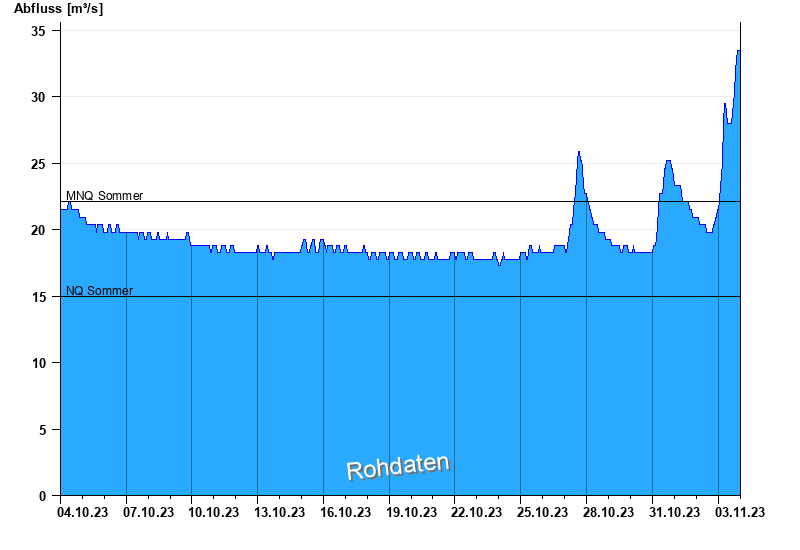 - Mittlerer Niedrigwasserabfluss MNQ 22,1 m³/s