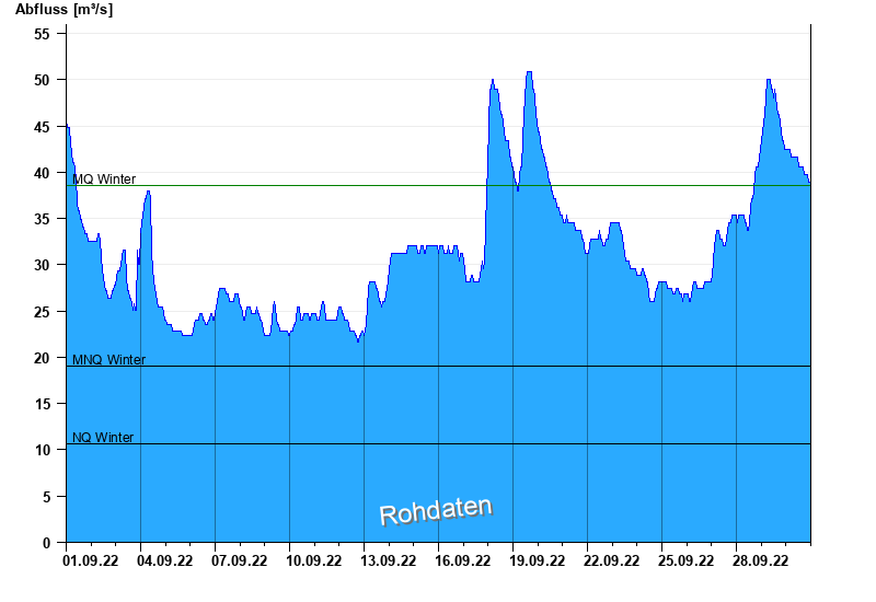 - Mittlerer Niedrigwasserabfluss MNQ 19 m³/s