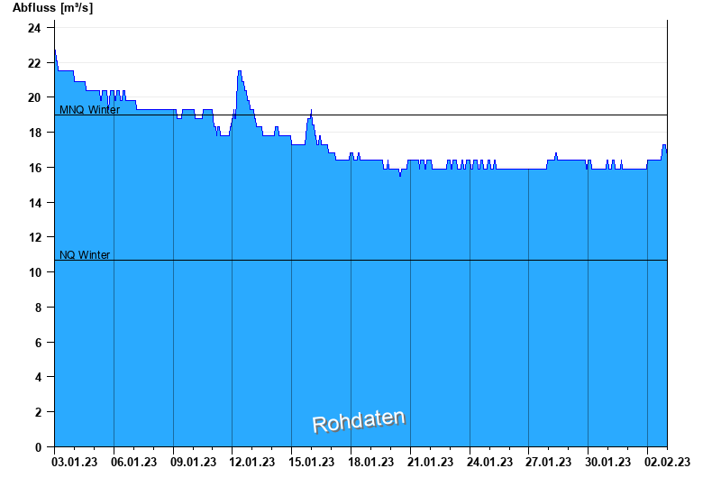 - Mittlerer Niedrigwasserabfluss MNQ 19 m³/s