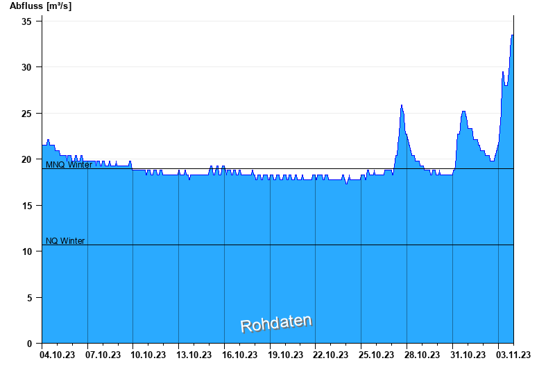 - Mittlerer Niedrigwasserabfluss MNQ 19 m³/s