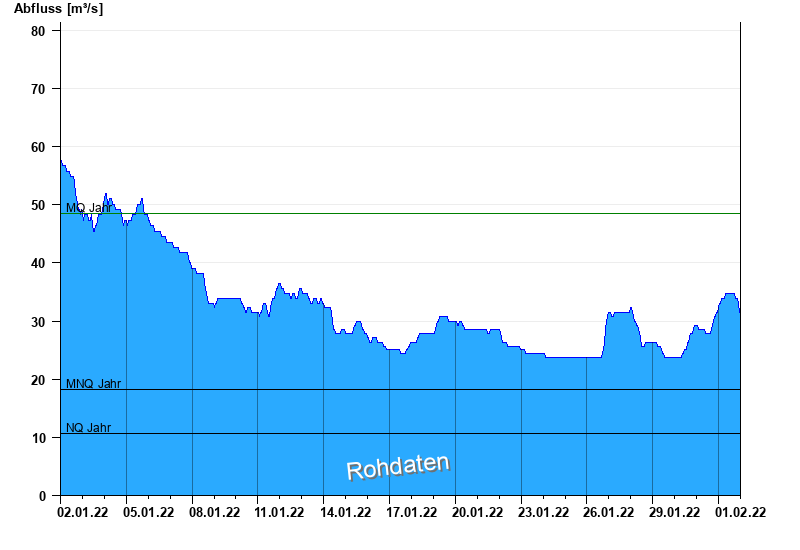 - Mittlerer Niedrigwasserabfluss MNQ 18,2 m³/s