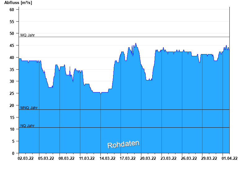 - Mittlerer Niedrigwasserabfluss MNQ 18,2 m³/s