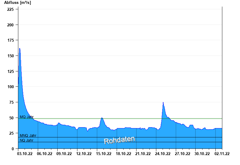 - Mittlerer Niedrigwasserabfluss MNQ 18,2 m³/s