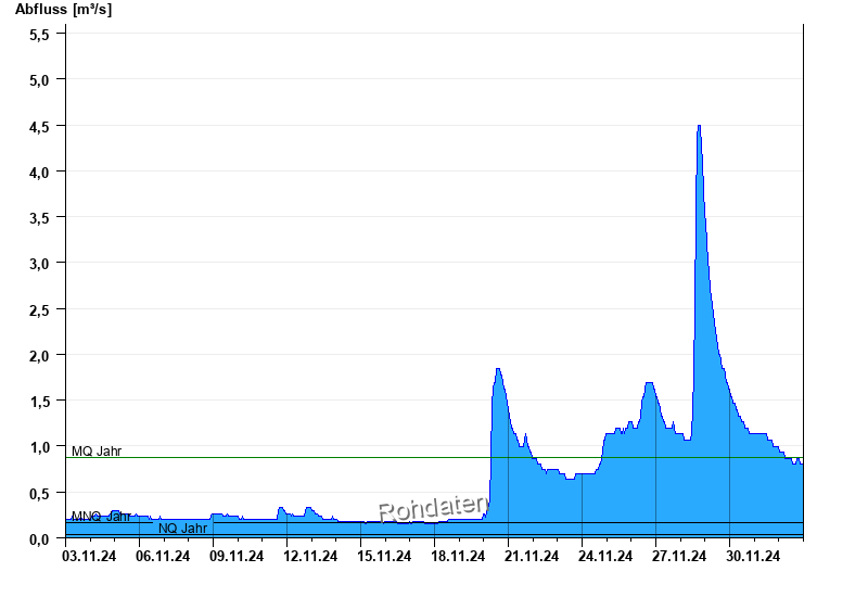- Mittlerer Niedrigwasserabfluss MNQ 0,162 m³/s