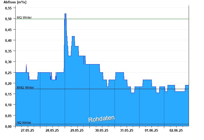 - Mittlerer Niedrigwasserabfluss MNQ 0,173 m³/s
