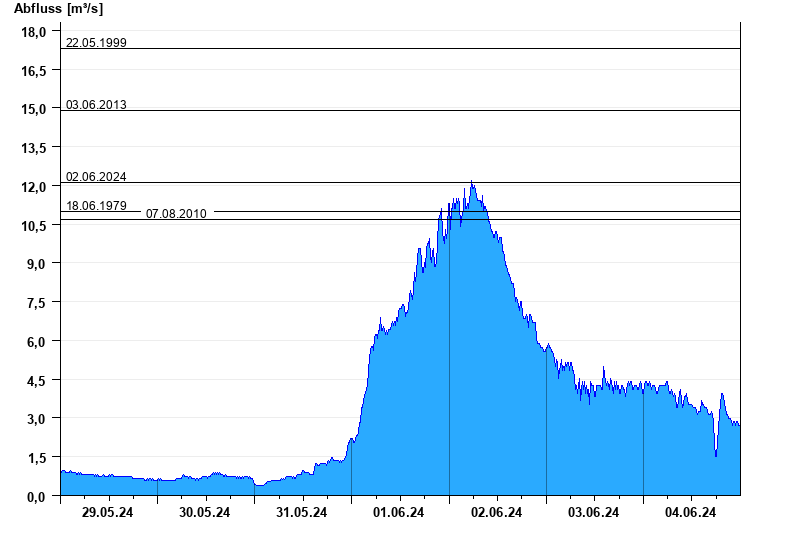 - 02.06.2024 Abfluss: 12,1 m³/s