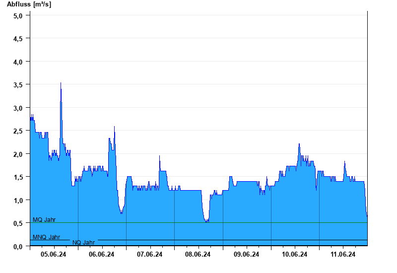 - Mittlerer Niedrigwasserabfluss MNQ 0,133 m³/s